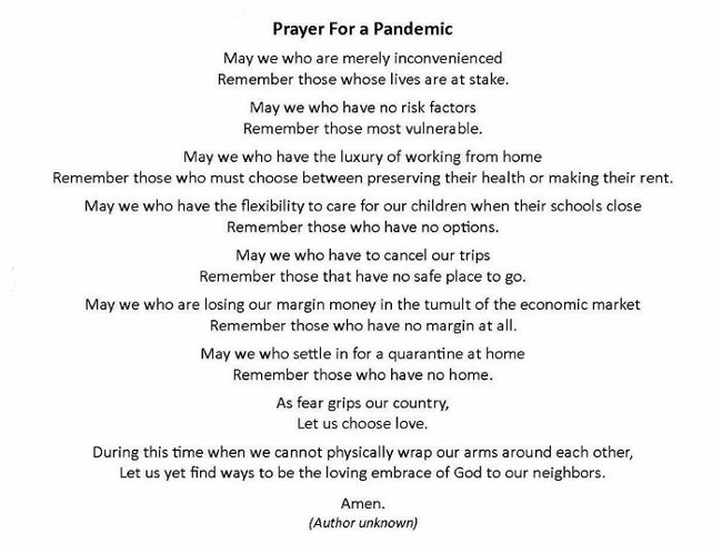 to include a prayer shared by Pastor Chuck at Immanuel Lutheran Church