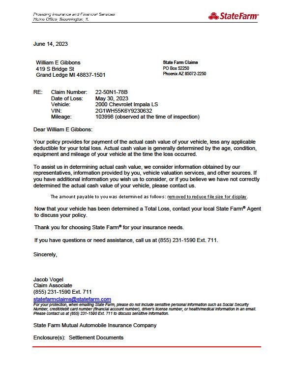 do that at Gerber once State Farm declared it to be a total. "Fool me
