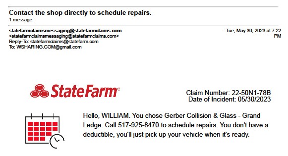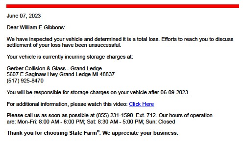 6/9/23 to arrange to bring my car home. The people at the body shop