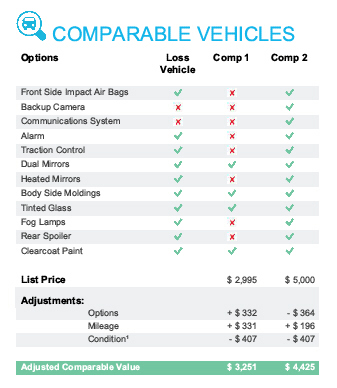 Comp one was missing 18. Yet, they put the value of my vehicle