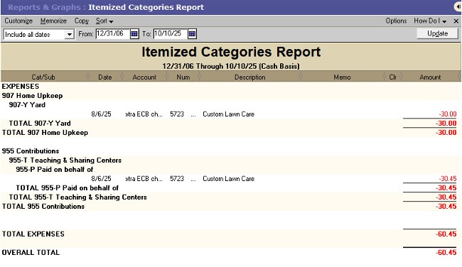 of $60.45 to pay my bill as directed, then divided it within my accounting