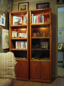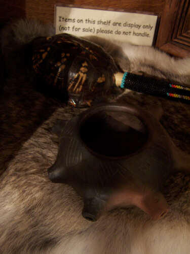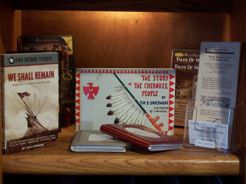 I have a good selection of Cherokee reference materials (books, videos, computer presentations, etc) available for use on site in this heritage and arts display area. In fact, if Cherokee history is new to you, I have a personal introduction to it I present using the display. If you are interested, drop by the Center when it is open or call for an appointment. I enjoy taking the time for it. |