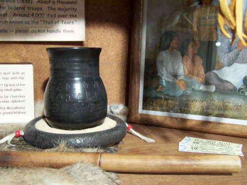 CBTC Heritage and Arts Displays are located upstairs at 417 SBS. Cherokee Bill's Teaching Center introduces visitors to a culture and history that most are quite surprised to discover. You can learn much about this by visiting the CBTC primary page (particularly the Cherokee Timeline) and both current, and future, scrapbook photo pages found elsewhere in this site. The story of the Cherokee Nation is a pretty incredible combination of achievement and sadness. Facing the truth of these real episodes in the American saga can help us see who we have been as a people - all of us. It can also guide us in determining who we wish to become. |