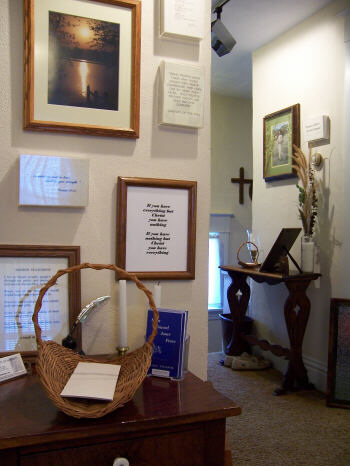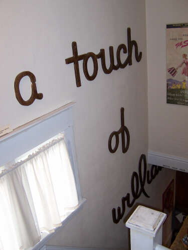 Much of the upstairs at the Center is taken up by my work areas. But, it is also home to the "a touch of william" studio gallery, Cherokee Bill's Teaching Center including the Cherokee Heritage & Arts display (shown on its own separate page), and some casual areas. The permanent gallery displays works of various artists as well as my own "out of print" enlargements. A unique piece hanging above the stairs is an original advertisement poster for "The Sound Of Music," given to me in the year of its release by my uncle who owned the theater where I worked as a teenager; after he was done displaying it during its run. There is plenty to see and learn about upstairs. |