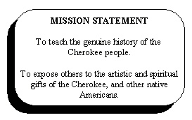 CHEROKEE BILL’S TRADE CENTER For the last few years I have been giving a little background, one per newsletter, on each of my DBA’s. The fifth heartbeat (aspect) of a touch of william is Cherokee Bill’s Trade Center (originally: Cherokee Bill’s Trade Center & Counsel House) Many years ago I was told by my mother that my maternal grandmother had told my sister that we were part Cherokee. I was also told that my sister researched it when she was considering colleges to see if we qualified for any grants, but that we were one generation too distant. Today, nobody seems to recall any of this. For a long time I accepted a partial Native American heritage without much thought one way or the other. I told my family however, I thought maybe they had confused the tribes, since the Cherokee were not indigenous to the Michigan area. I suggested perhaps we were Chippewa, or something, since they both started with CH. But, I never bothered to look into it. From 1985, when I began my spiritual searching in earnest, through 1994, when I left my State Farm career to do what I do today, Cherokee "coincidences" seemed to crop up with some regularity. One such coincidence occurred when Donna and I were traveling through Missouri. I decided on a whim to stop and read a historical marker along the road we were on. It was a commemorative marker showing where the Trail of Tears had passed through that area of Missouri. That piece later played into how my name came about. I knew that the Cherokee were a southeastern United States tribe. So, when I received a scholarship in 1995 from the Billy Graham Training Center (The Cove in Asheville, North Carolina) to attend a seminar there, I prayed to God about all the "Cherokee stuff" that had been cropping up. I offered that if I was supposed to be paying attention to this, and there were a place where I could learn about the Cherokee close to where I was going, I would stop there to see where it lead. As it turned out, the Eastern Band of the Cherokee Nation is located 50 miles from where I was, and practically right on my way home. That first visit to Cherokee, North Carolina was not all that impressive. It is a very touristy place. But, I did manage to find the museum, Occunaluftee Village, the Qualla Arts and Crafts co-op, and a few other things which gave me more accurate information about the Cherokee, and their (our) history. But, the Center was only just beginning at that time, so I had no idea if God’s plan included any of this. In June 1995 a chance occurrence created the name Cherokee Bill. Step by step, my Native American connection came to be a major part of a touch of william. Like all of the aspects it has changed or been adjusted frequently as I attempt to find my way along this path. But, it has become a very joyful part of what I do. Not necessarily the historical aspects, which are more often than not very tragic. Yet, on the whole, I enjoy both learning about and sharing the history, the heritage, the philosophies, and the creativity of the Cherokee, and other Native American tribes. While I have never taken the time to verify the blood connection, it would likely not change much. I see Cherokee Bill as a called, God ordained, spiritual path. CHEROKEE HISTORY OF DATES 10,000 B.C. – 8000 B.C. Paleo-Indian (nomadic, present in North Carolina) 8000 B.C. – 1000 B.C. Archaic Period (trade networks, pottery) 1000 B.C. – 900 A.D. Woodland Period (agriculture, permanent log homes, ceremonial & effigy mounds) 900 A.D. – 1600 A.D. Mississippian Period (flat-topped pyramidal mounds; Etowah) 1540 DeSoto expedition (1st contact with Europeans) 1690 "Seraqui" captives sent to West Indies 1697 first smallpox epidemic among Cherokees 1721 treaty with South Carolina (1st land cession) 1730 Cuming takes Cherokee delegation to England 1738 smallpox kills half of Cherokee population 1755 2nd land cession Between 1768 and 1819 the Cherokee ended up ceding land to European or American governments 33 more times, including a treaty in 1798 which guaranteed their remaining lands forever, which actually worked out to be until 1804 when their 15th land cession took place. Between 1808 and 1810 some Cherokees saw the writing on the wall and migrated west of the Mississippi. 1821 Sequoyah introduces syllabary (similar to an alphabet, this was based on Cherokee language sounds, and allowed an Indian language to be written for the first time) 1822 Cherokees establish a Supreme Court 1827 Cherokees write a constitution claiming sovereignty over their remaining land. 1828 Andrew Jackson elected president of the U.S. >> Gold discovered on Cherokee land >> the first issue of the Cherokee Phoenix appears (Cherokee newspaper in Cherokee & English) 1829 Jackson announces Indian removal policy >> Georgia extends laws over Cherokee Nation 1830 Indian Removal Act >> Georgia law requires citizen allegiance oath >>Missionaries are arrested and imprisoned 1832 In Worchester vs Georgia the U.S. Supreme Court upholds Cherokee sovereignty but Georgia holds a land lottery and begins dividing and distributing Cherokee land. 1834 Georgia confiscates Cherokee Phoenix press, declaring the newspaper subversive. 1835 Treaty of New Echota is negotiated with a handful of Cherokees without tribal authority 1836 U.S. Senate ratifies fraudulent treaty 1838 Forced removal of Cherokees begins In 1836 at the ratification of the fraudulent New Echota treaty the U.S. government gave the Cherokees two years to emigrate or face forced removal. "By May 1838 only two thousand of the 16,000 Cherokees had migrated west. At that time the government sent in 7,000 militia and volunteers to remove the remaining Indians. Armed with rifles and bayonets, the soldiers rounded up the Cherokees and herded them into stockades. The Indians were allowed little or no time to gather possessions. As they turned for one last glimpse of their homes, they often saw them being ransacked for valuables by whites, or in f