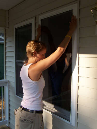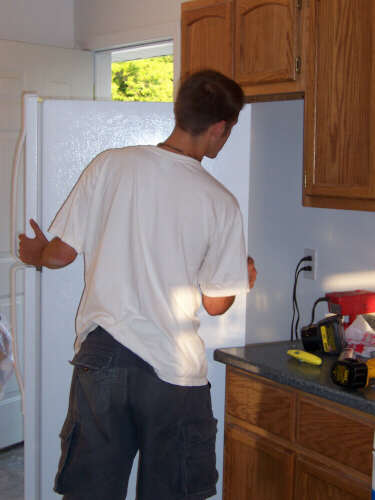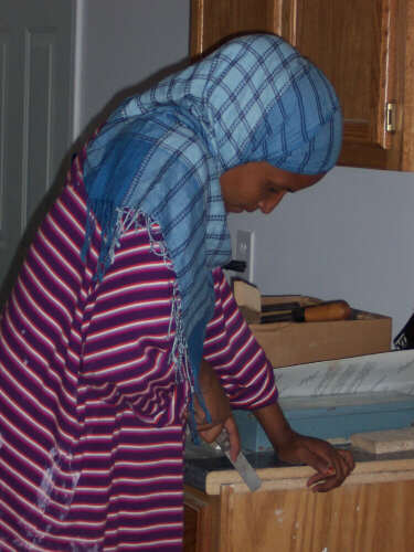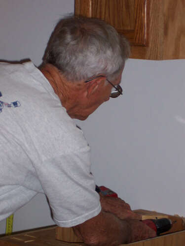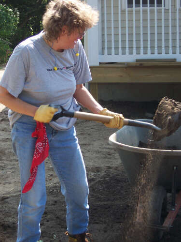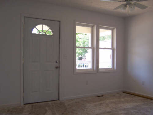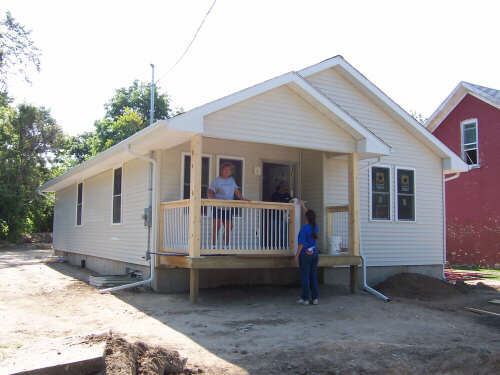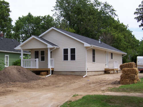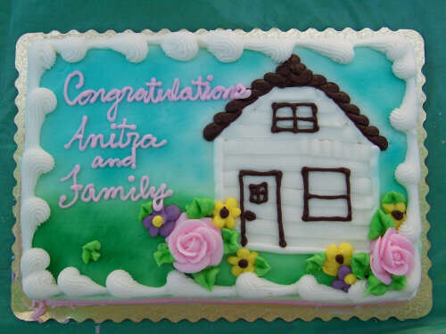 I showed up a little bit early on Dedication Day, so I could take some pictures (above left, immediate left, and the rest below) of the finished product before many people started arriving. If you have visited each of these HFH pages, you have journeyed with us and seen the transformation. In 2010, I reformatted the gallery pages and relived the steps of combining tools, materials, lots of volunteers, and a few dedicated leaders into the creation of a family home. It is a pretty marvelous thing to behold. It is an even better experience to participate in, and I encourage you to do so. When I revised these pages in 2010, I shifted the photos of the people at the dedication to a separate page. The cake picture is the link to that page. |