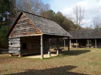 Cherokee farmstead of the early 1800's. A Cherokee building, probably a store