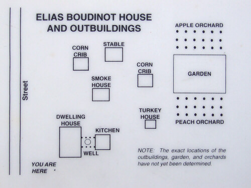 | Archaeology revealed the Boudinot House was probably destroyed by fire sometime in the mid-1800's. Several hundred pieces of lead printing type were also uncovered here." | |