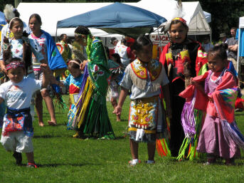 The removal of the tent was completed, and the elders got settled in with us (above left), without any significant interruption of the dancing. But the wind continued to blow and gust, as several of the pictures will attest to. |
