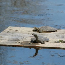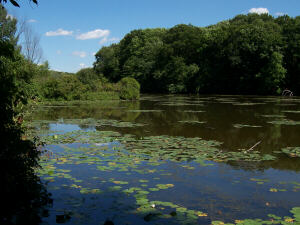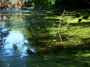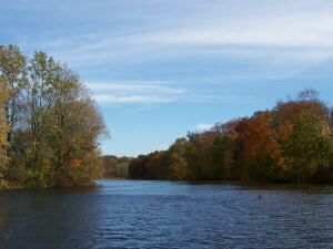 Most prominent on the opening page map, besides the river itself, is the large lagoon. As we move to the digital images below, I will begin with that area, then move to some pictures along the river taken during a ride on what was then a newly donated pontoon boat. The president of the board and a couple of staff members were about to take a test drive when I happened along and was invited to join them. Pontoon boat rides are often available during festival times. |
