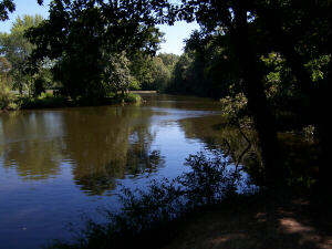 Actually, I have a tale to share relating to the above three pictures (unfortunately none from the event). For a few years, an organization called Project Lakewell participated in the American Heritage Festival by establishing a voyageur (fur traders) camp on the banks of the lagoon (about where the number 14 is on the map). The encampment included a 26 foot replica canoe. Although I am not a re-enactor, I was a member of the organization and regularly helped them bring the canoe in by river, and take it back out when the festival wrapped up. One year, during the weekend, after we had arrived at the campsite by canoe, the City of Lansing opened their dam to lower the river (for cleanup I suppose). The water level dropped so low that in the area where the river and the lagoon meet, we had to get out of the canoe and pull it by ropes into the deeper river. We referred to that year as a most genuine French Voyageur experience. Another was close, but it is a different story. |