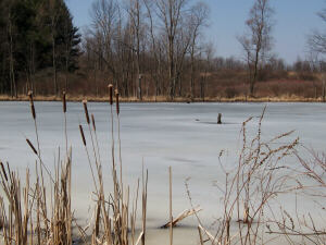 The Woodland Pond is not just about trying to see some wildlife though. Indeed, on many visits the pond area had nothing but its own beauty to offer to my camera. Flowers and plants, textures and reflections, give ample opportunities for great picture taking. This area is also one of the few where I do have some winter shots I can share with you. The first two are 35mm images taken in 1990 and 1991. From there we will continue on through more recent winters into warmer weather. |